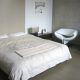 Mit diversen Eingriffen wurde der Charakter der Dachgeschoss-Wohnung grundlegend verändert. Das spitz zulaufende Dach wurde mit Trockenbauelementen zu einem gewölbten Dach umgeformt. Auf der Nordseite wurden die beiden Bäder, ein kleiner Abstellraum und eine Ankleide mit einer hochglanzlackierten Verkleidung zu einer großzügigen langen Front verbunden. Mit einem durchgehenden weissen Boden aus großformatigen Platten und kaum sichtbaren Fugen wurde ein großzügiger und heller Raum geschaffen. Im Schlafbereich wurden bündig mit den weissen Bodenplatten ein weisser Baumwollteppich aufgespannt. Mit einem roten Ess- und Kochtisch wurde die Küche entsprechend dem Wunsch des Bauherren zu einem Mittelpunkt der Wohnung gestaltet. Neben den Einbauten wurden alle Möbel mit Ausnahme von Sofa und Stühlen individuell gestaltet.